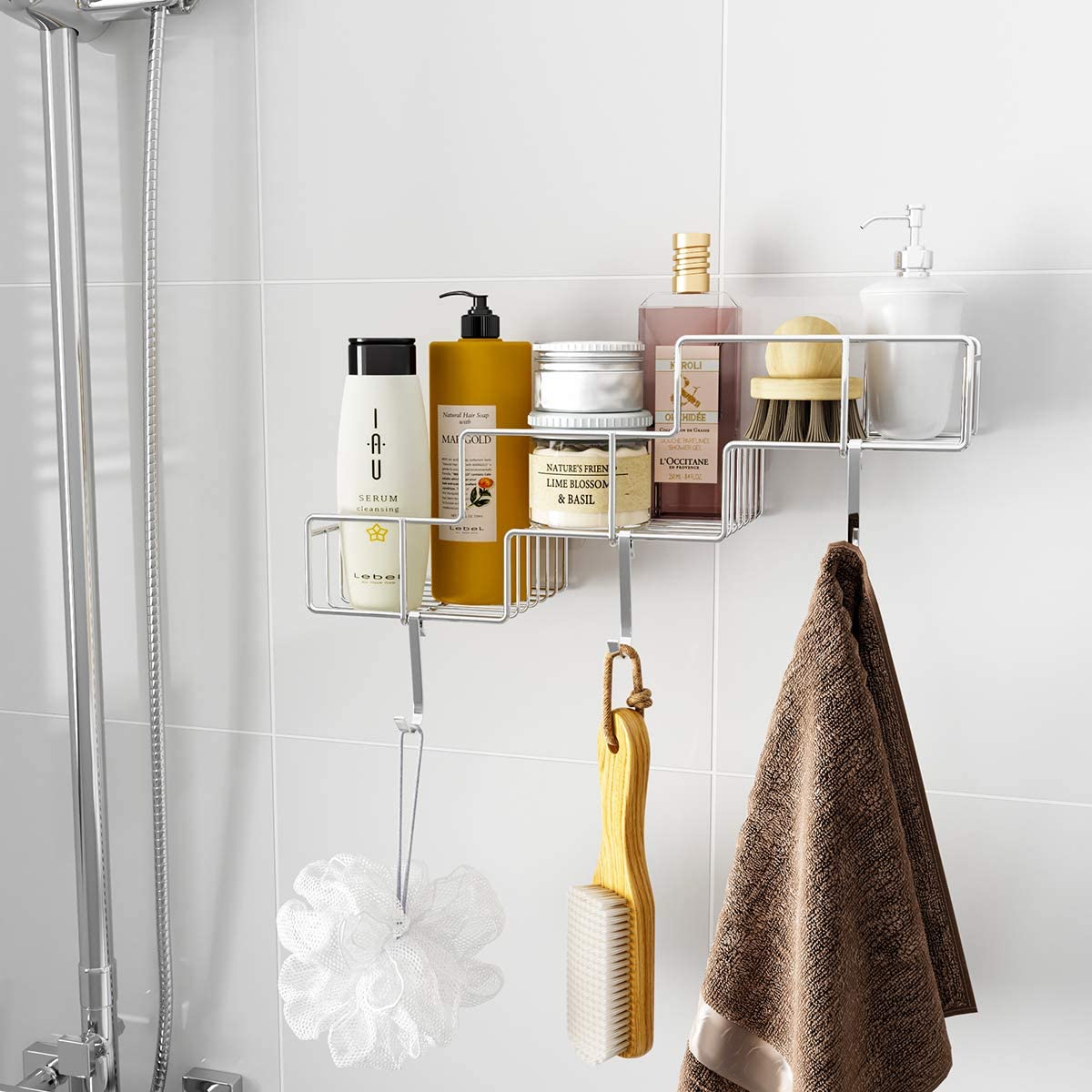 - BUY WITH CONFIDENCE – You will get 1 X Bathroom Shelf, 2 X Adhesive, 3 Movable Hooks, and an Installation Description. If you’re unsatisfied with our shower caddy, kindly contact us via e-mail for a prompt replacement or a full refund.