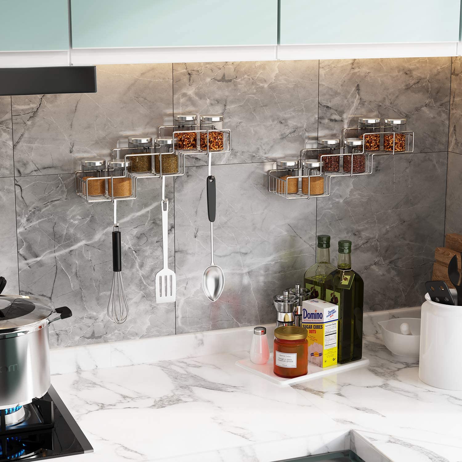 - LARGE CAPACITY – Enough space for storing and organizing wash supplies, kitchen gadgets, decoration items, etc. And 3 hooks for bath sponge and towel.