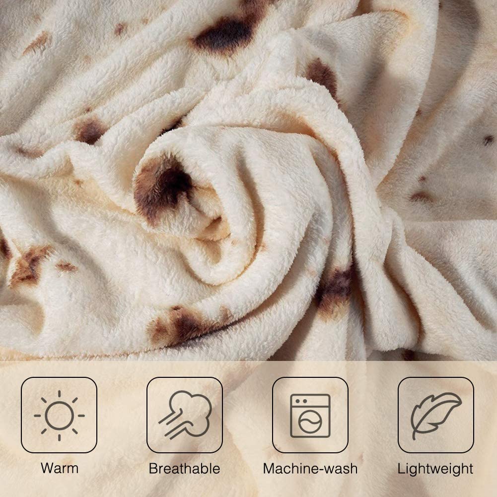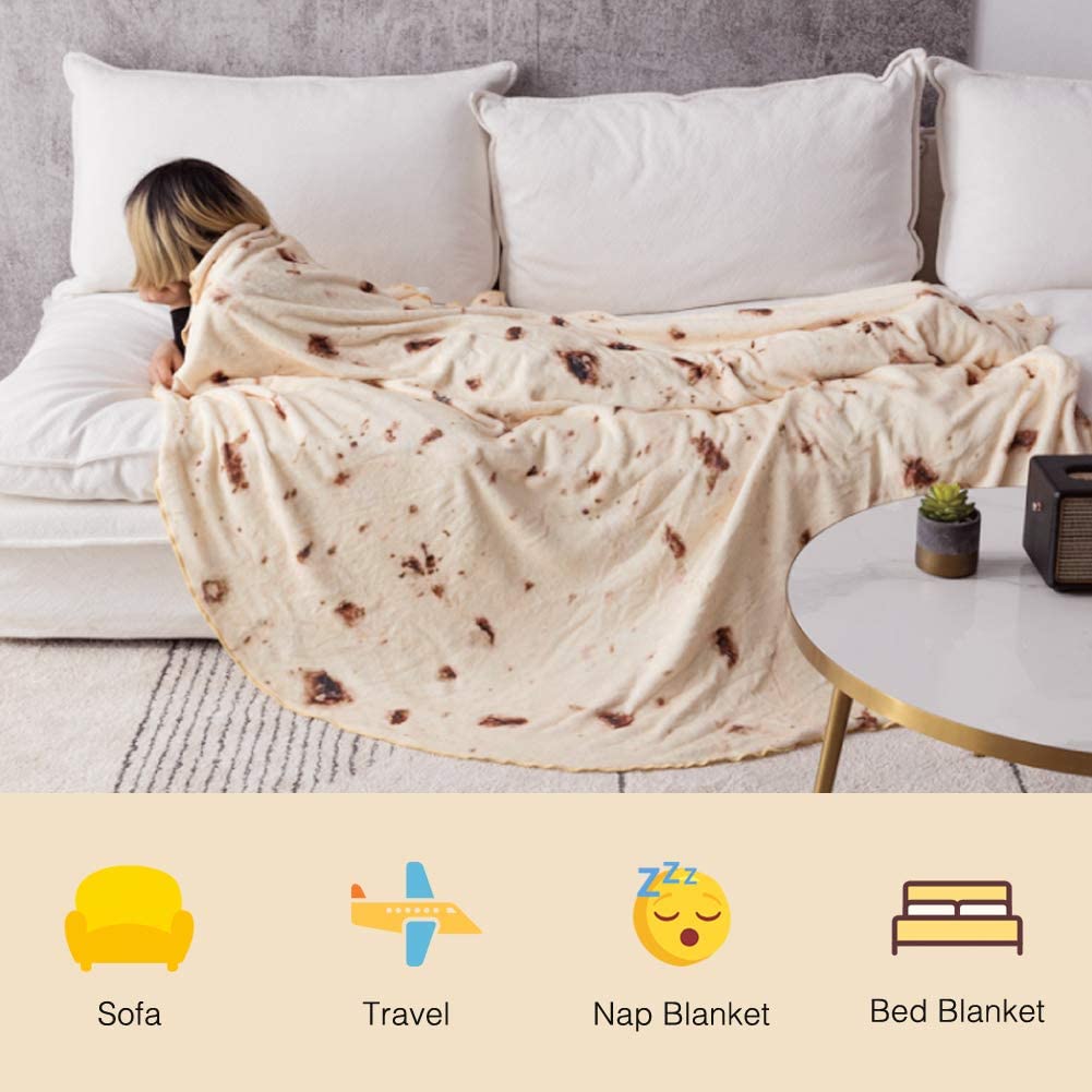 ExpiredRAINBEAN Burrito Tortilla Blanket, Perfectly Round Novelty Blanket to be a Giant Human Burrito, Throw Food Creation Wrap Blanket for Bed/Sofa/Picnic/Beach/Travel/Office/Aircraft (Gift 72inches)